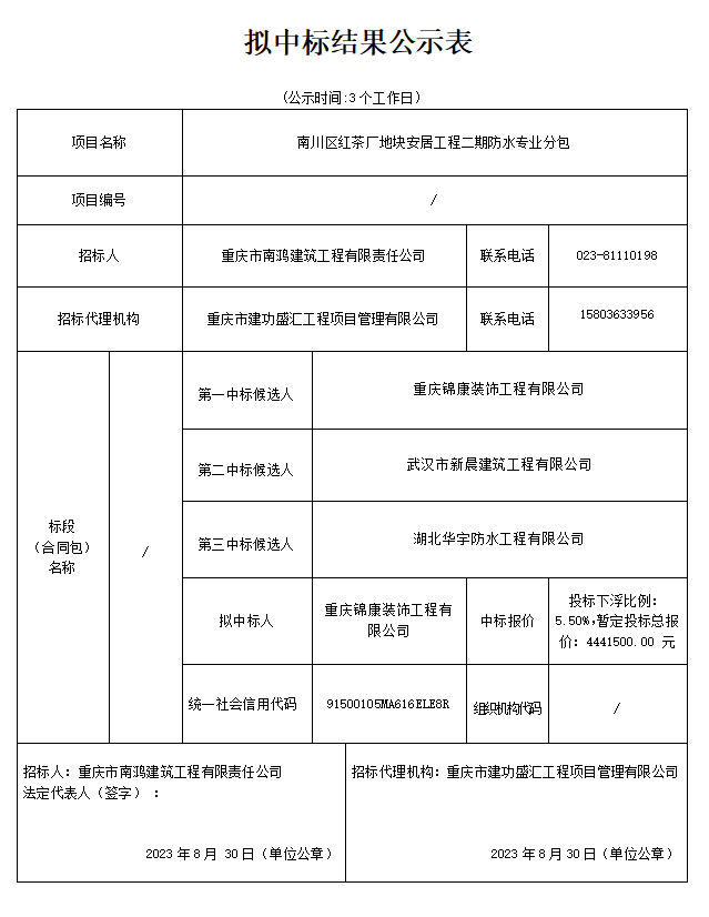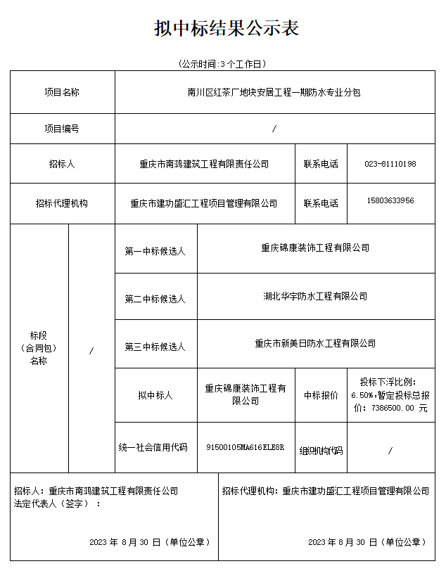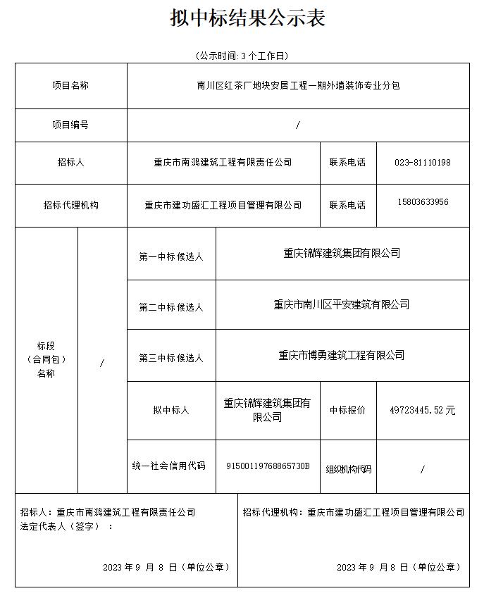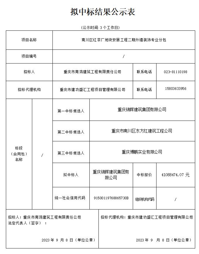 点击下载附件:南川区红茶厂地块安居工程一期外����� �������Ƴ������������ �������Ƴ������墙装饰专业分包中标公示 doc...
