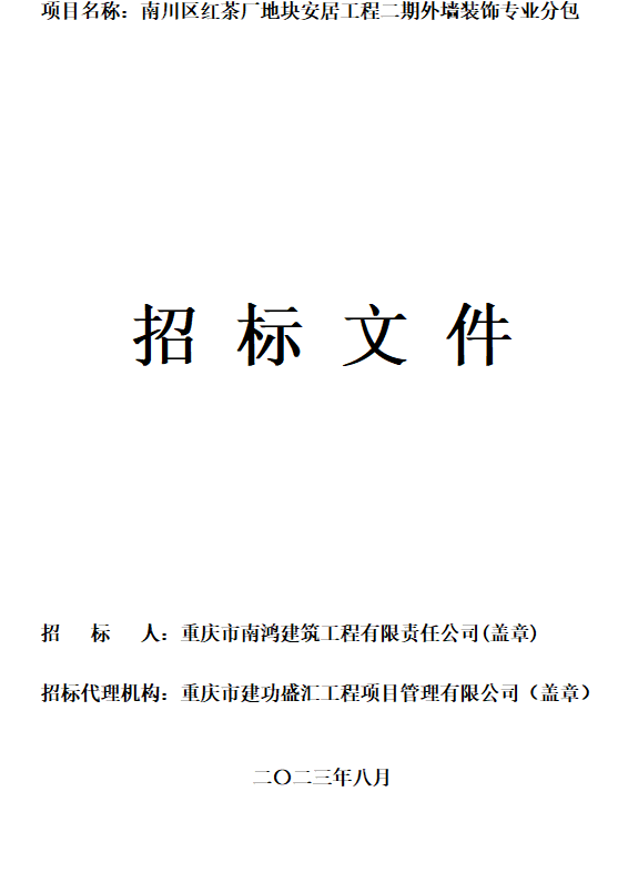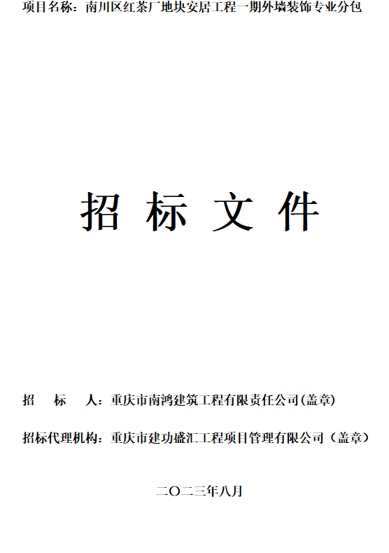 点击下载附件:南川区红茶厂地块安居工程二期外墙装����� �������Ƴ������������ �������Ƴ����������� �������Ƴ�������饰专业分包招标文件 docx...