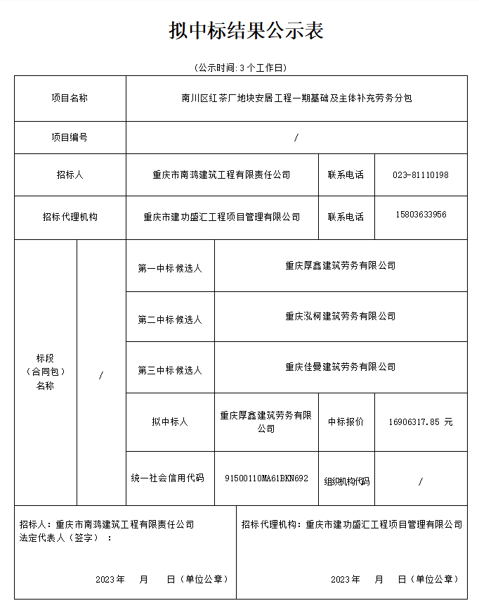 点击下载附件:南川区红茶厂地块安居工程一����� �������Ƴ������������ �������Ƴ�������期基础及主体补充劳务分包拟中标.����� �������Ƴ������������ �������Ƴ�������.....